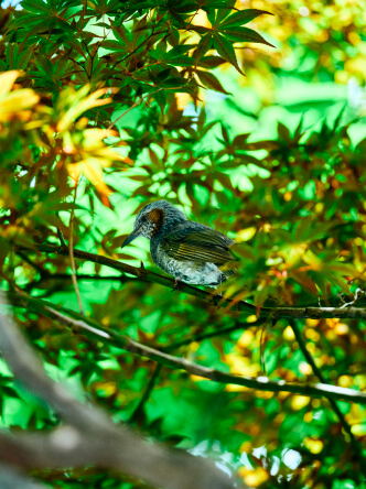 KANDA FORESTで出会える野生の鳥や虫は数えきれないほど。ここを棲み家にするいきものもいれば、季節や気候、時間を選んでやってくるいきものも。春夏秋冬に朝な夕なに、いきものたちとの一期一会を楽しめます。